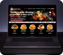Логотип визуально обыгрывает знаменитую космооперу, представляя бургер, пронзенный световым мечом — это одновременно и отсылка к Силе, и метафора невероятно сочного и яркого вкуса. Мрачная, но динамичная черно-красная гамма с контрастными белыми акцентами создает атмосферу дерзкого вызова и культовости. Такой дизайн мгновенно находит отклик у поклонников саги и создает запоминающийся, игривый образ для бургерной.