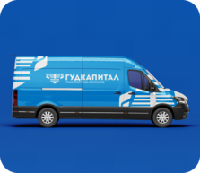 Логотип «ГУД КАПИТАЛ» выполнен в строгой синей цветовой гамме, символизирующей надежность, профессионализм и стабильность перевозок. Визуал, включающий стилизованный корпус фуры и голубые графические элементы, передает идею движения, логистических маршрутов и четкой организации процессов. Сбалансированная композиция и холодная палитра создают образ солидной компании, вызывающей доверие у корпоративных клиентов.