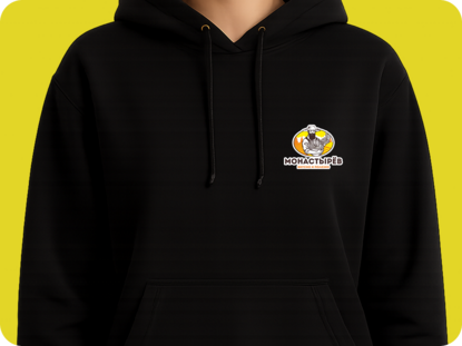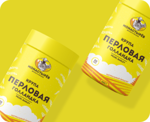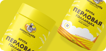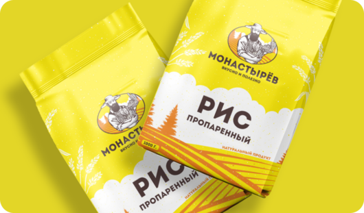 Логотип «Монастырев» представляет собой детализированную иллюстрацию мужчины в соломенной шляпе с лукошком свежих овощей на фоне умиротворенного поля. Теплая, натуральная палитра из оранжевого, желтого и темно-коричневого передает атмосферу летнего урожая и домашнего уюта. Этот образ стал основой для линейки упаковки, где фирменные цвета и ключевой персонаж создают мгновенно узнаваемый и вызывающий доверие образ на полке.